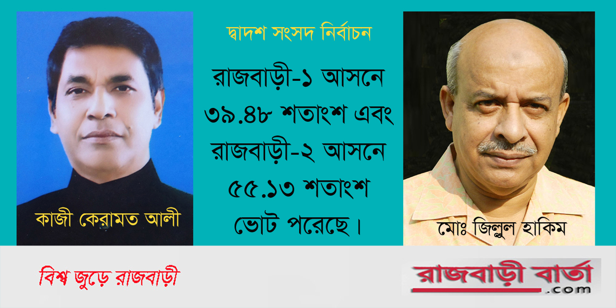 রাজবাড়ী-১ আসনে ৬ষ্ঠ বার কাজী কেরামত আলী এবং রাজবাড়ী-২ আসনে ৫ম বার জিল্লুল হাকিমের বিজয়